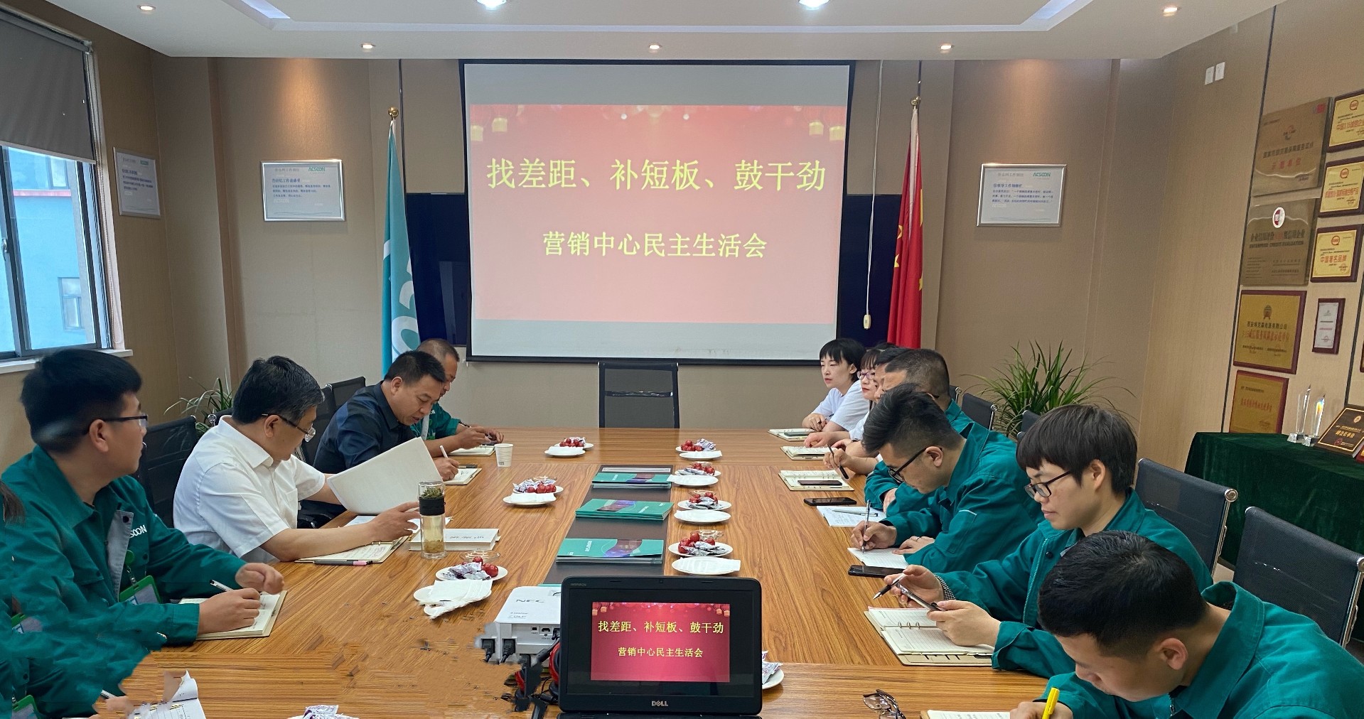 5月15日,我公司召开了《找差距、补短板、鼓干劲》—营销中心民主生活会,董事长、总经理出席会议并讲话。