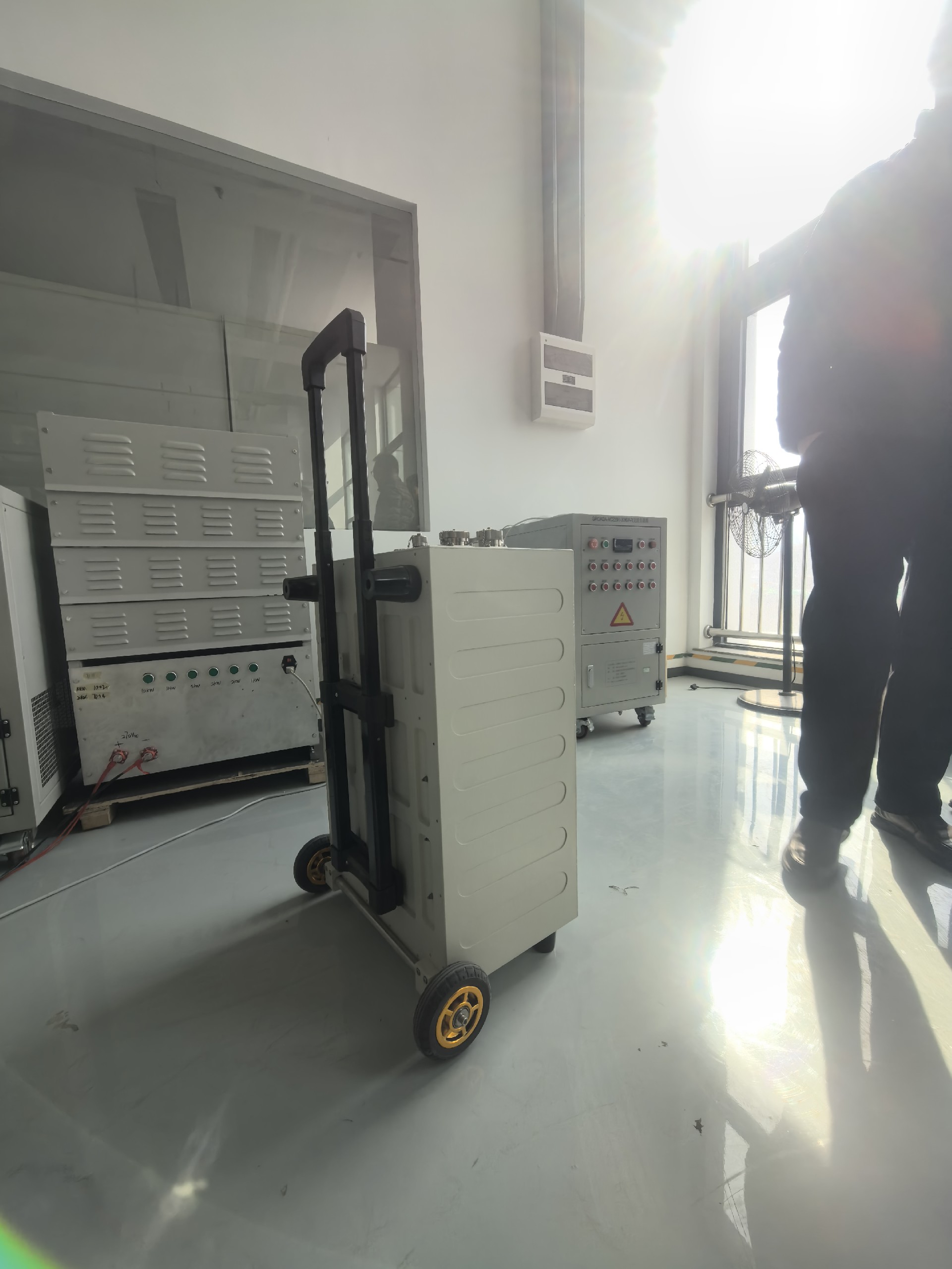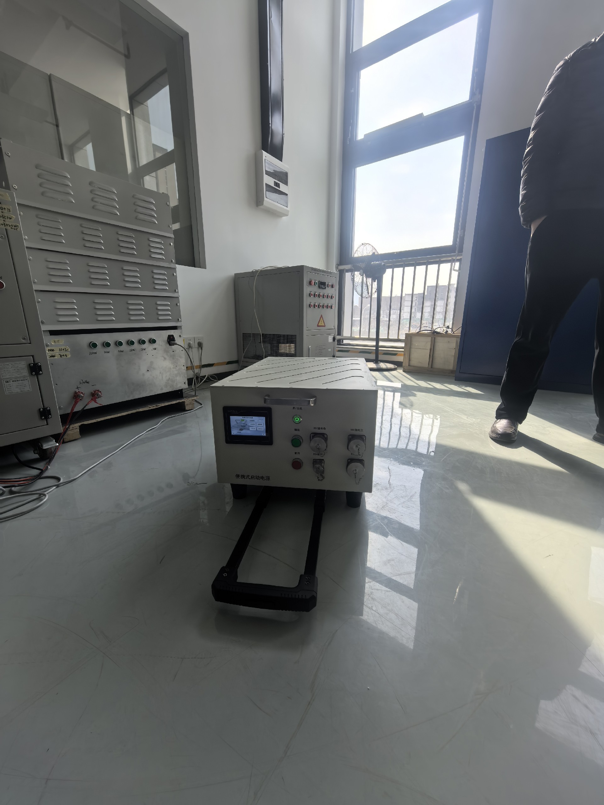 便携式启动电源主要由主机、充电机及配套电缆组成。主机主要由储能???、管理系统、电源开关、复位开关、显示屏、输入输出连接器、箱体、拉杆、脚轮、上下提手、垫脚等组成。